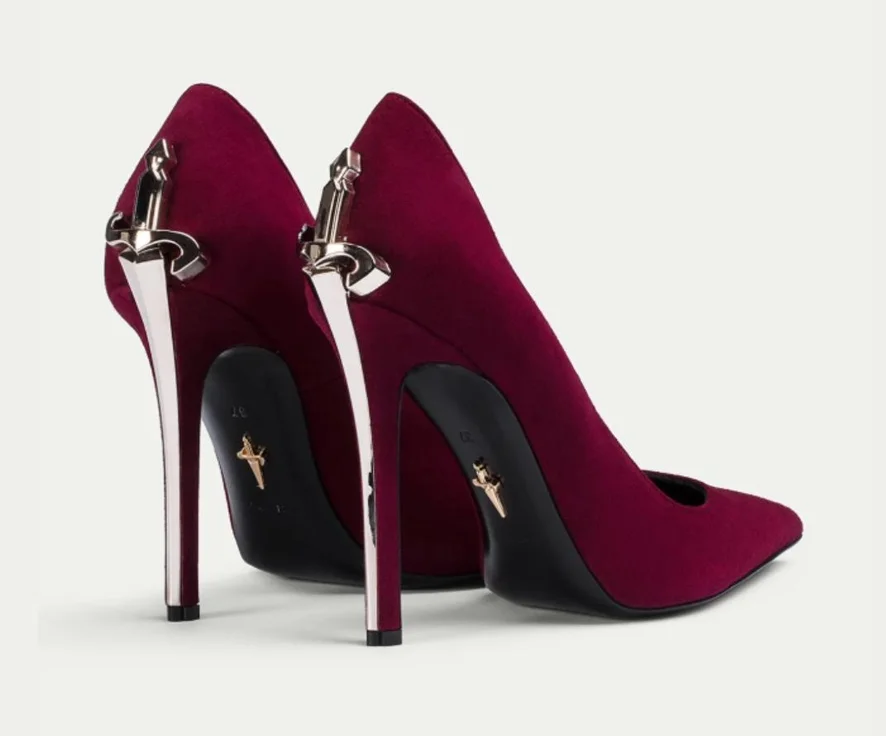 Goat suede pump with a sharp pointed toe and defined vamp. The stiletto heel is finished with the dagger heel, an iconic design of the maison.